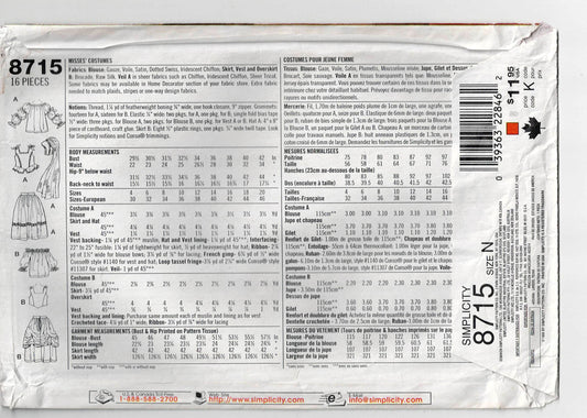 Patrón de costura Simplicity 8715 para traje renacentista de mujer, años 1990, talla 10-14, sin cortar, doblado de fábrica
