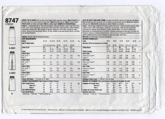 Patrón de costura vintage de los años 90 para faldas ajustadas para mujer Simplicity 8747, tallas L, XL, sin cortar, doblado de fábrica