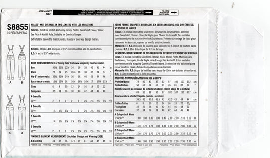 Patrón de costura de mono de punto elástico para mujer Simplicity S8855, talla 6 a 14, sin cortar, doblado de fábrica