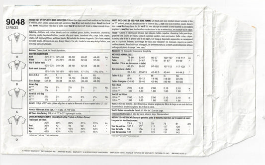 Patrón de costura vintage de los años 90 Simplicity 9048 para mujer, de dos horas, con detalle en la espalda, talla L, XL, sin cortar, doblado de fábrica