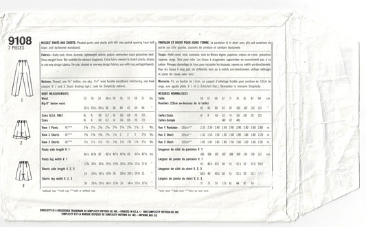 Simplicity 9108 CHRISTIE BRINKLEY Womens Pleat Front Pants & Bermuda Shorts 1980s Vintage Sewing Pattern Size 12 - 16 UNCUT Factory Folded