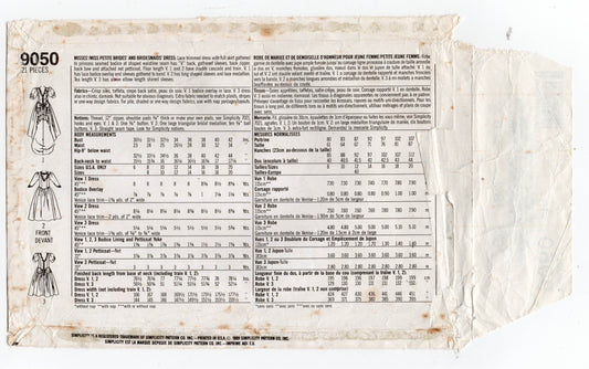 Patrón de costura vintage de los años 80 Simplicity 9050 JESSICA McCLINTOCK para vestido de novia o de dama de honor con espalda en V y mangas abullonadas, talla 16, busto de 38 pulgadas, sin cortar, doblado de fábrica