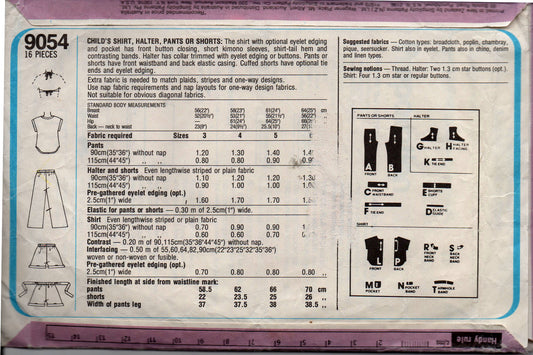 Patrón de costura vintage de los años 70 Simplicity 9054 para camisa de niña, top con cuello halter, pantalones y pantalones cortos, talla 6