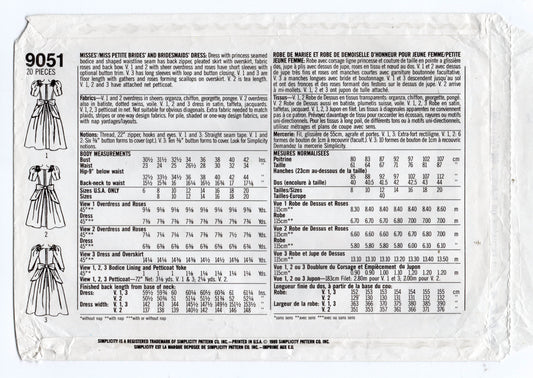 Patrón de costura vintage de los años 80 para vestido de novia con mangas abullonadas y falda amplia BELLE FRANCE de Simplicity 9051, talla 10, sin cortar, doblado de fábrica
