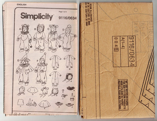 Simplicity 9116 Toddler Boy or Girl Costumes for Halloween Party or Dress Ups 1990s Vintage Sewing Pattern Size 1 - 4 UNCUT Factory Folded