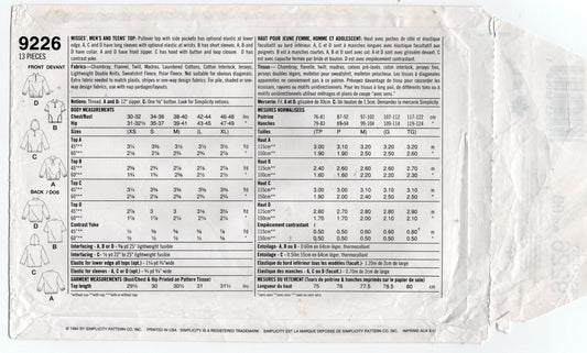 Patrón de costura Simplicity 9226 para hombre, mujer y adolescente, unisex, estilo grunge, de los años 90, talla L, XL, sin cortar, doblado de fábrica