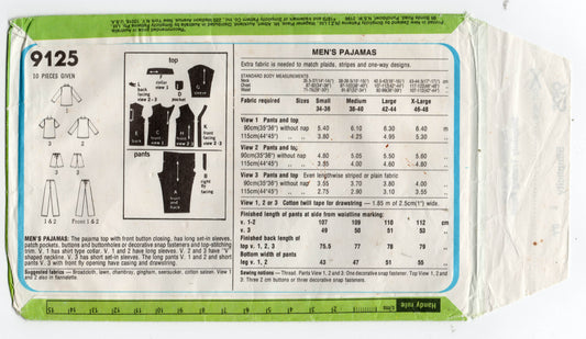 Patrón de costura vintage de los años 70 para pijamas cortos o largos para hombre Simplicity 9125, talla MEDIANA, pecho de 38 a 40 pulgadas