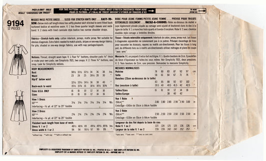 Patrón de costura vintage de los años 80 para vestidos de punto elásticos para mujer Simplicity 9194 DENNIS GOLDSMITH, talla 10, sin cortar, doblado de fábrica