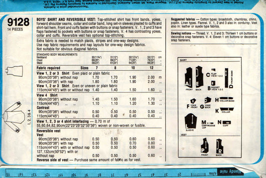 Patrón de costura vintage de los años 70 para camisa vaquera y chaleco reversible para adolescentes Simplicity 9128, talla 12, sin cortar, doblado de fábrica