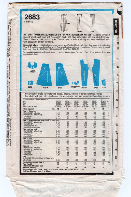 Patrón de costura vintage de los años 70, vestido y pantalón de maternidad para mujer, estilo 2683, talla 12
