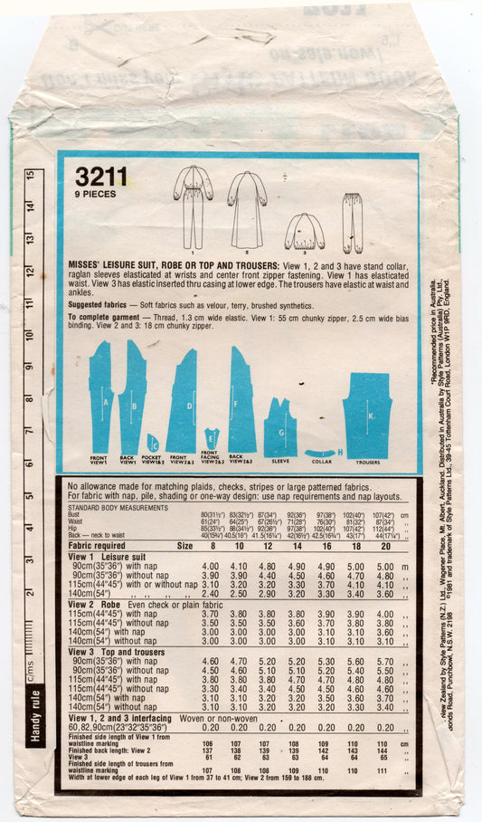 Patrón de costura vintage de los años 80, estilo 3211, para mono, chándal o pijama y bata para mujer, talla 14-18