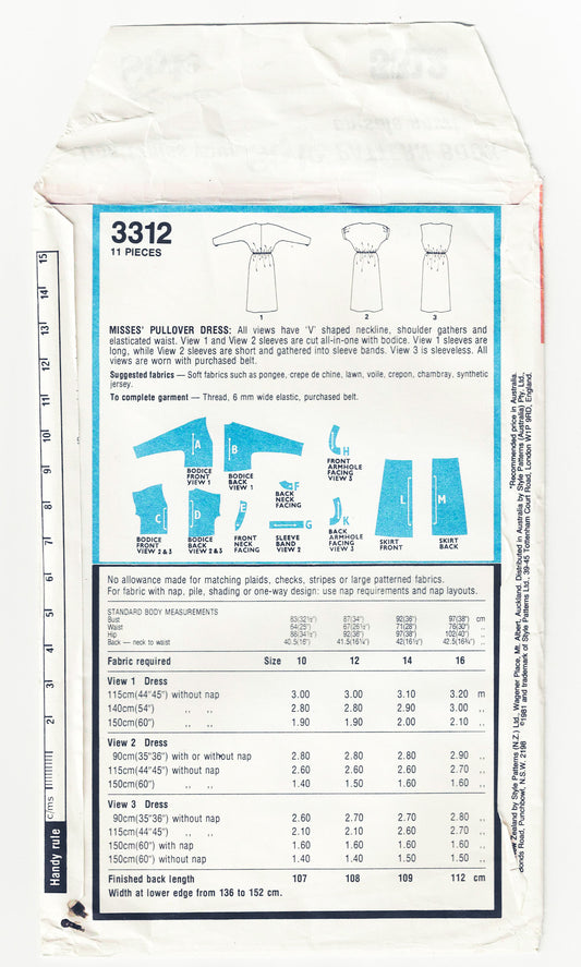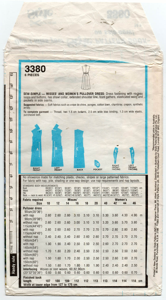 Style 3312 Womens EASY Pullover Casual Dress 1980s Vintage Sewing Pattern 10 - 16 UNCUT Factory Folded