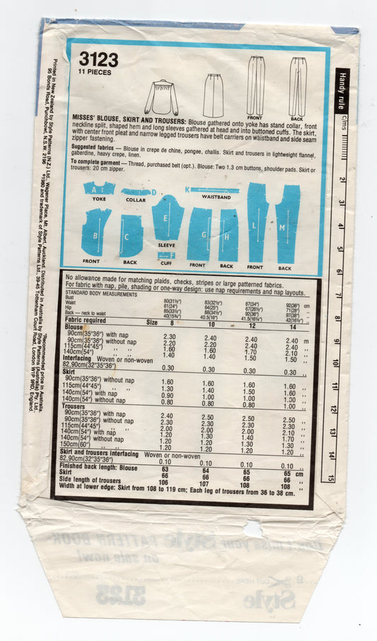 Patrón de costura vintage de los años 80 para pantalones y falda tubo con cuello alto para mujer, estilo 3123, talla 12, busto de 34 pulgadas