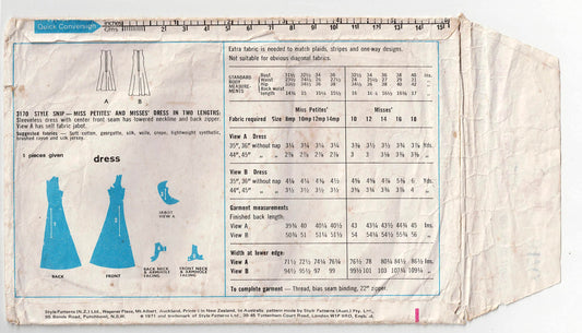 Patrón de costura vintage de los años 70 para vestido largo o vestido con jabot para mujer, estilo 3170, talla 12 MP, busto de 34 pulgadas