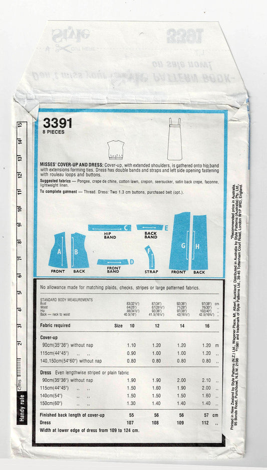 Patrón de costura vintage de los años 80 para vestido y chaqueta de verano para mujer, estilo 3391, talla 10, busto 32 1/2 pulgadas