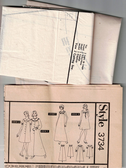 Style 3734 Womens Round Yoked Nightgown & Housecoat 1970s Vintage Sewing Pattern Size XX LARGE Bust 46 - 48 Inches