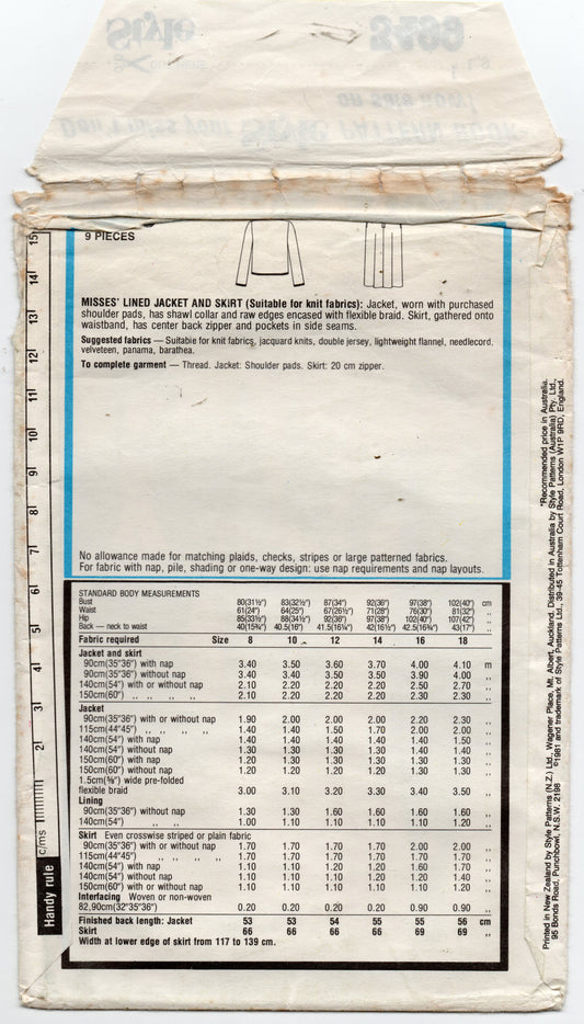 Patrón de costura vintage de los años 80 para chaqueta y falda con ribetes en contraste, estilo 3499, para mujer, talla 12, busto de 34 pulgadas, sin cortar, doblado de fábrica