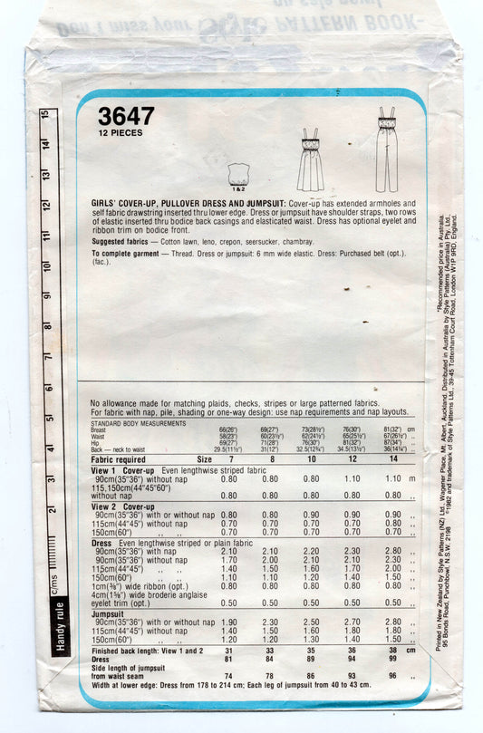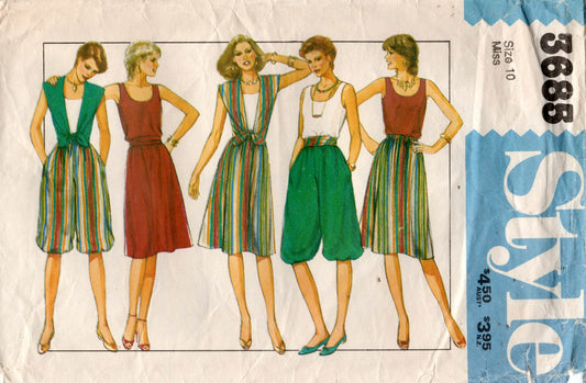 Patrón de costura vintage de los años 80, estilo 3647, para vestido y mono para adolescentes, talla 14, sin cortar, doblado de fábrica