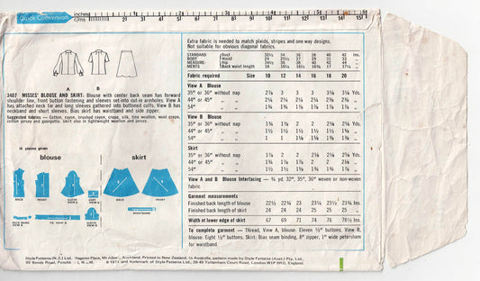 Style 3407 Womens High Neck Blouse & Skirt 1970s Vintage Sewing Pattern Size 14 Bust 36 inches