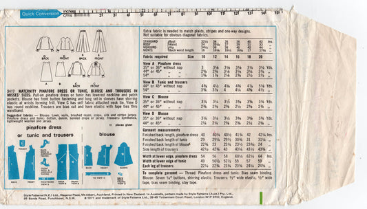 Patrón de costura vintage de los años 70, estilo 3417, blusa y pantalón tipo túnica para maternidad para mujer, talla 10, busto 32 1/2 pulgadas