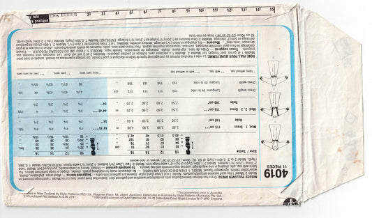 Patrón de costura vintage de los años 80 para vestidos de mujer con mangas dolman y ribete de volantes, estilo 4019, talla 12-16