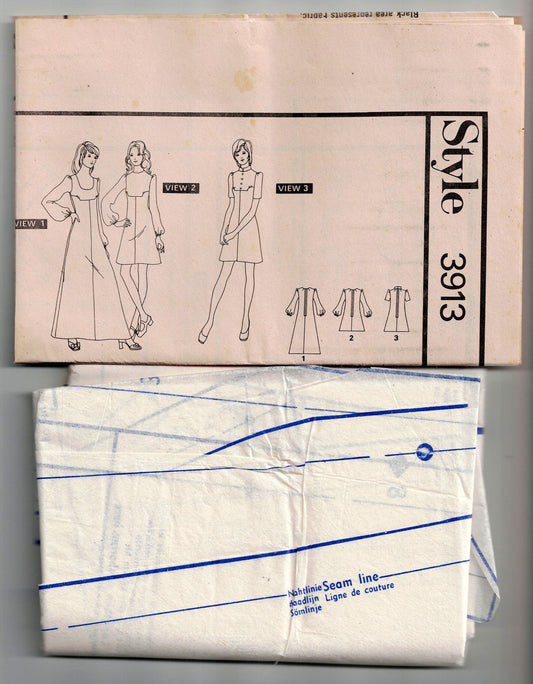 Style 3913 Womens Empire Waisted Colour Blocked Dress 1970s Vintage Sewing Pattern Size 12 Bust 34 inches