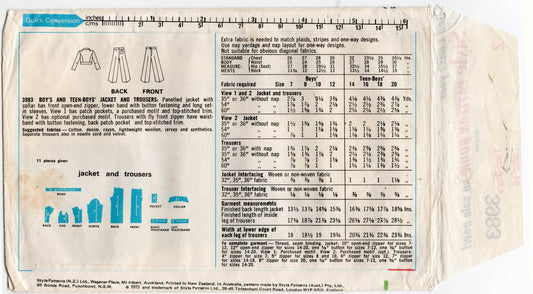 Patrón de costura vintage de los años 70 para chaqueta bomber y jeans estilo 3983 para adolescentes, estilo retro, talla 16, pecho 33,5 pulgadas