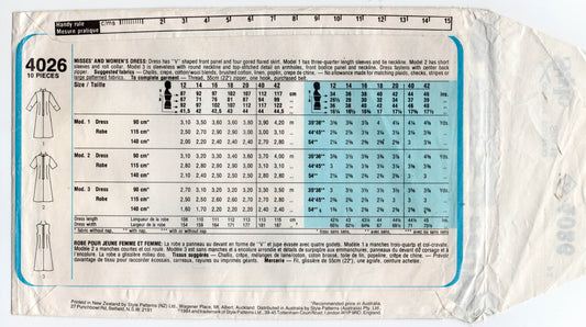 Patrón de costura vintage de los años 80, estilo 4026, para vestido de mujer con costura diagonal, talla 16, busto de 38 pulgadas