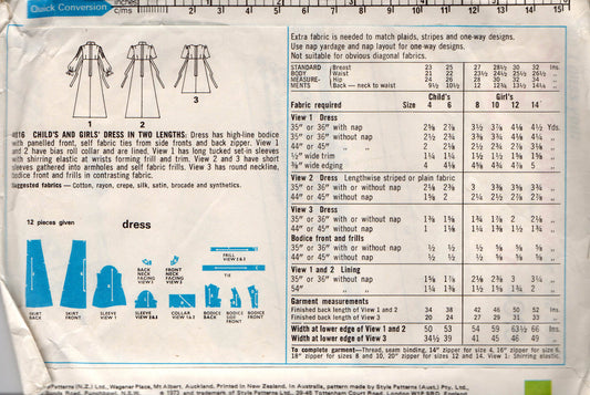 Patrón de costura vintage de los años 70 para vestido de princesa pequeña para señoritas estilo 3874, talla 16 MP, busto de 38 pulgadas