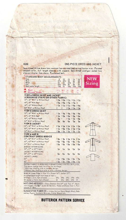 Butterick 4686 Womens MOD Shift Dress & Jacket 1960s Vintage Sewing Pattern Size 10 Bust 32.5 inches UNCUT Factory Folded