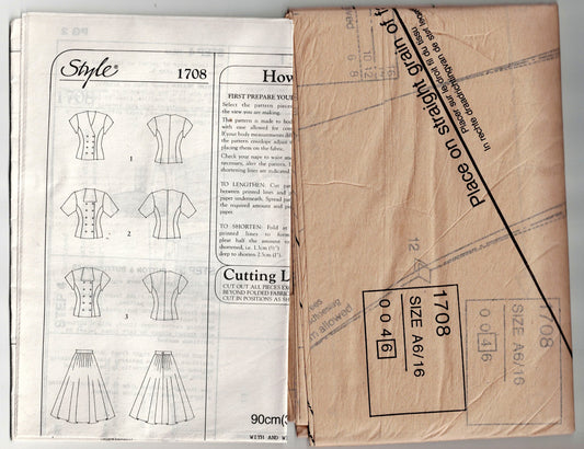 Style 1708 Womens Double Breasted Jacket & Pleated Waist Skirt 1990s Vintage Sewing Pattern Size 6 - 16 UNCUT Factory Folded