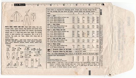 Patrón de costura vintage de los años 50 Simplicity 3180 para abrigo, pantalones con tirantes y gorro para niños pequeños, talla 4