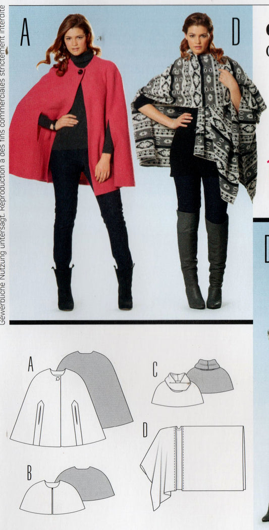 Patrón de costura para chal, capa y bolero para mujer Burda Young 7313, tallas 10 a 22, sin cortar, doblado de fábrica