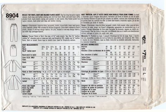 Patrón de costura vintage de los años 80 para guardarropa de mujer Simplicity 8904 de CHRISTIE BRINKLEY, sin cortar, doblado de fábrica, talla 10