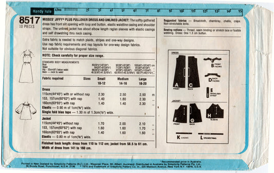 Patrón de costura vintage de los años 70 para vestido de verano y chaqueta de mujer Simplicity 8517, talla pequeña 10-12