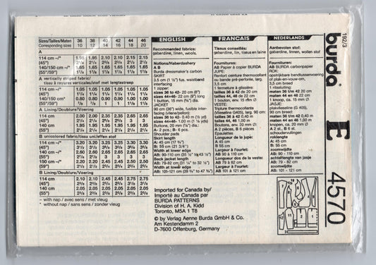 Patrón de costura Burda 4570 para traje con falda en bloques de color para mujer, años 90, tallas 10 a 20, sin cortar, doblado de fábrica