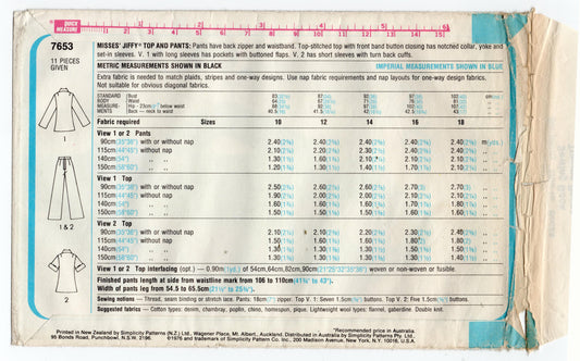 Patrón de costura vintage de los años 70 para blusa y pantalones estilo safari JIFFY para mujer Simplicity 7653, talla 10, sin cortar, doblado de fábrica