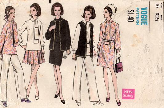 Patrón de costura Vogue 7671 para mujer, chaqueta, vestido, blusa, falda y pantalones, años 60, talla 10, busto 32 1/2 pulgadas