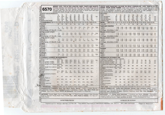 Patrón de costura McCall's 6570 para prendas de vestir para mujer, estilo vintage de los años 90, sin cortar, doblado de fábrica, talla 14-18