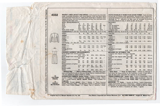 Patrón de costura vintage de los años 80 para vestido y chaqueta con cuello halter EKLEKTIC 4332 de McCall para mujer, talla 6 a 10, sin cortar, doblado de fábrica