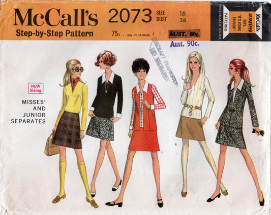 Patrón de costura vintage de los años 60 para blusa, falda, chaqueta y chaleco para mujer McCall's 2073, talla 16, busto de 38 pulgadas, sin cortar, doblado de fábrica