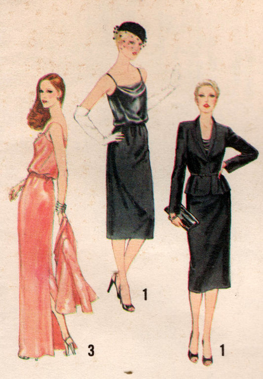 Patrón de costura vintage de los años 70 para vestido y chaqueta estilo discoteca Simplicity 9239 para mujer, talla 12, busto de 34 pulgadas
