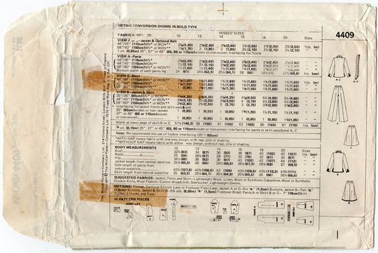 Patrón de costura vintage de los años 70 para chaqueta, falda y pantalones estilo safari para mujer McCall's 4409, talla 14, busto de 36 pulgadas