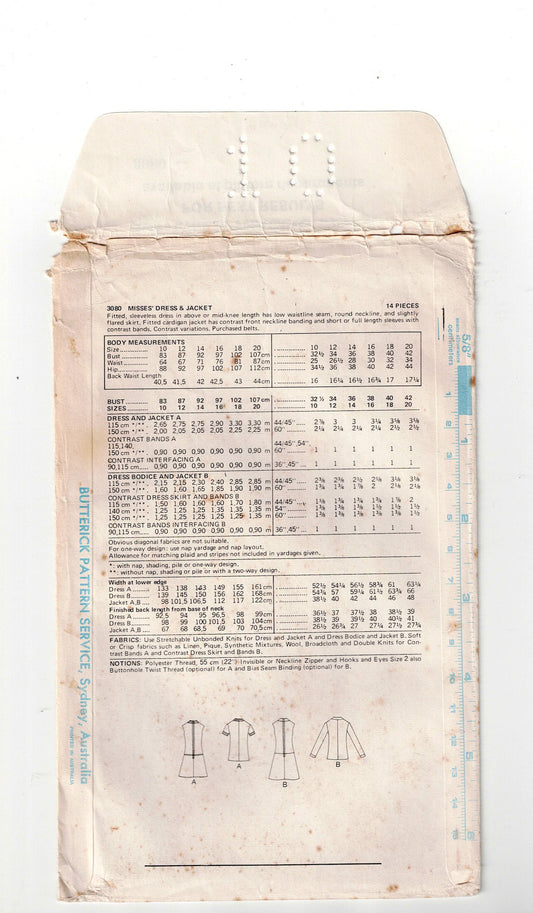 Patrón de costura Butterick 3080 para vestido y cárdigan elásticos fáciles de usar para mujer, años 70, talla 12, busto de 34 pulgadas