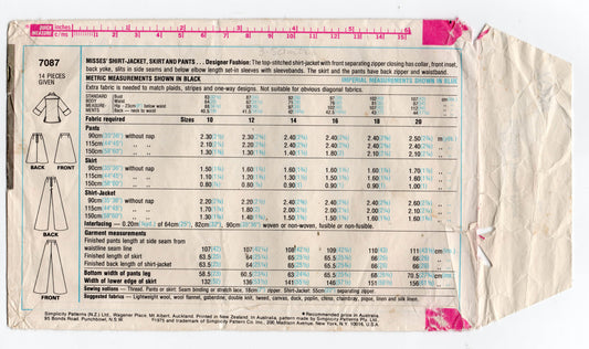 Patrón de costura vintage de los años 70 para mujer Simplicity 7087, para camisa, chaqueta, falda y pantalones acampanados, talla 16, busto de 38 pulgadas