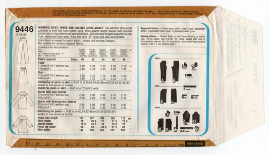Patrón de costura vintage de los años 80 para camisa, falda y pantalones de talla grande para mujer Simplicity 9446, talla 44, busto 48 pulgadas, SIN CORTAR, doblado de fábrica