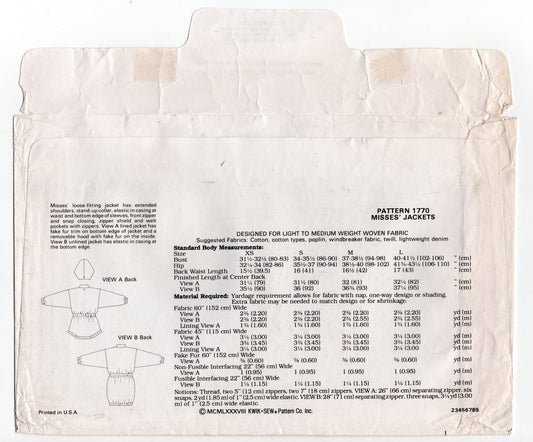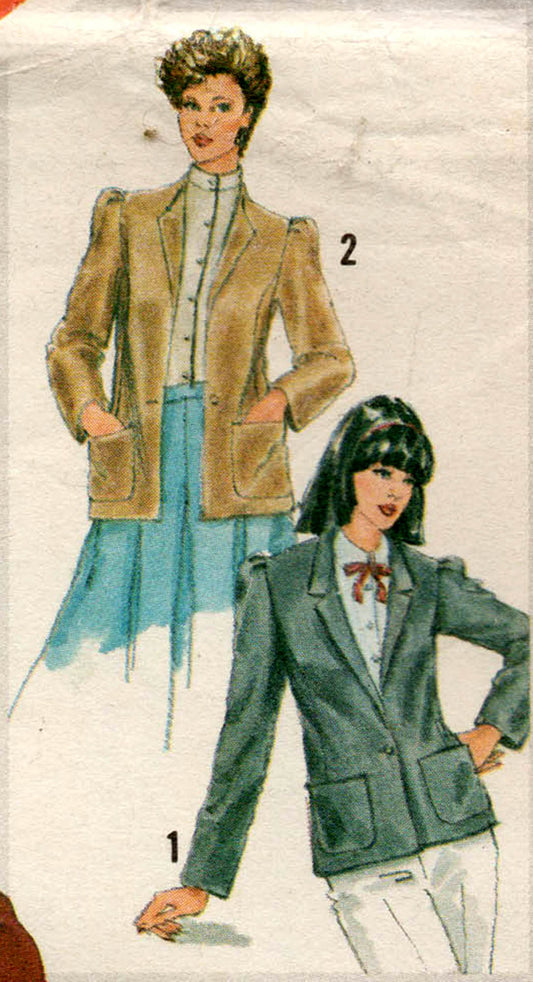 Patrón de costura vintage de los años 80 para chaqueta con mangas abullonadas y forro Simplicity 5630 para mujer, talla 12, busto de 34 pulgadas, sin cortar, doblado de fábrica