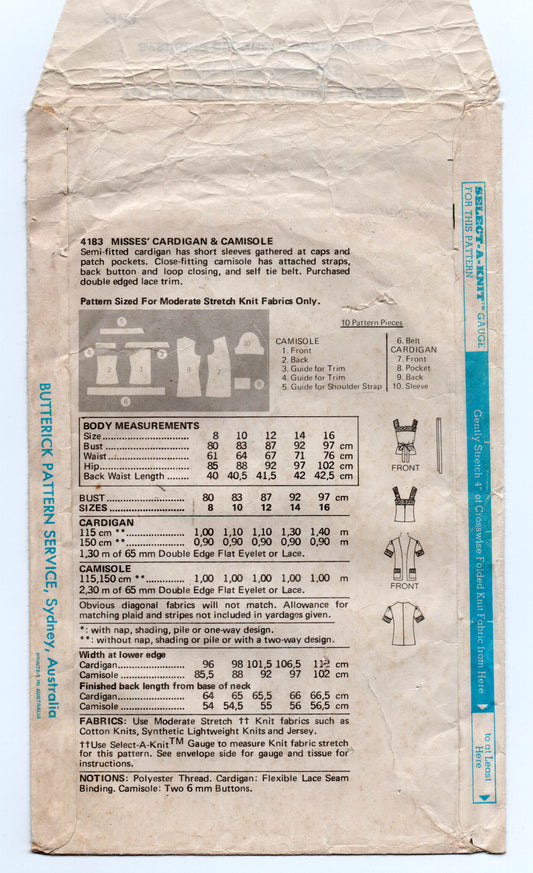 Patrón de costura Butterick 4183 para camisola y chaqueta tipo cárdigan elásticas, fácil y rápido, para mujer, de los años 70, talla 14, busto de 36 pulgadas