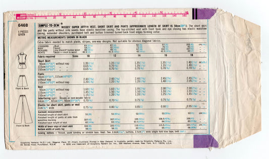 Patrón de costura vintage de los años 70 para falda y pantalón con botones Simplicity 6468 para mujer, talla 16, busto de 38 pulgadas