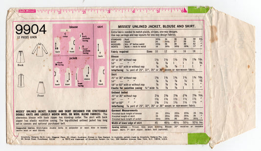 Patrón de costura vintage de los años 70 para mujer, falda, blusa y chaqueta tipo cárdigan, talla 14, busto de 36 pulgadas, sin cortar, doblado de fábrica, Simplicity 9904